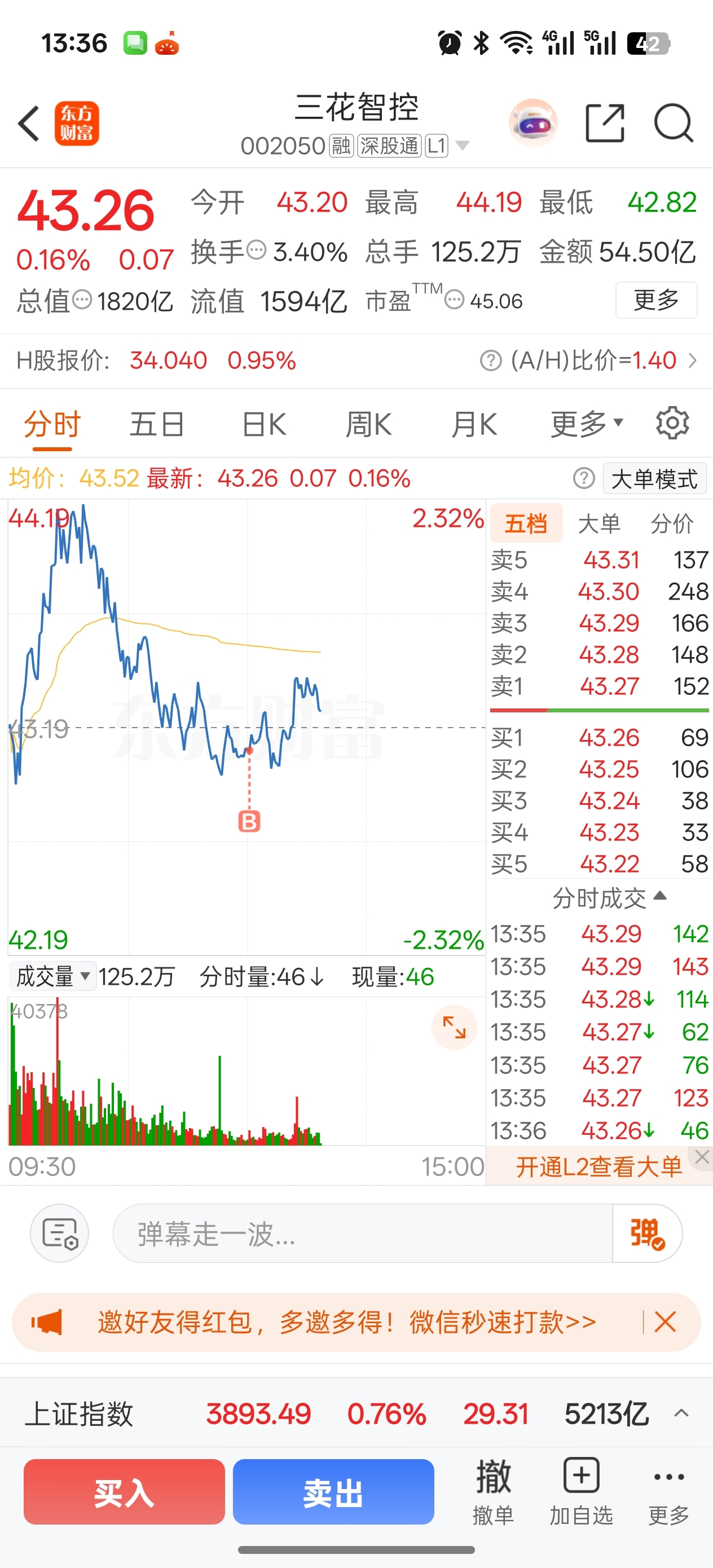 $三花智控(SZ002050)$ 看好三花,年底能到60