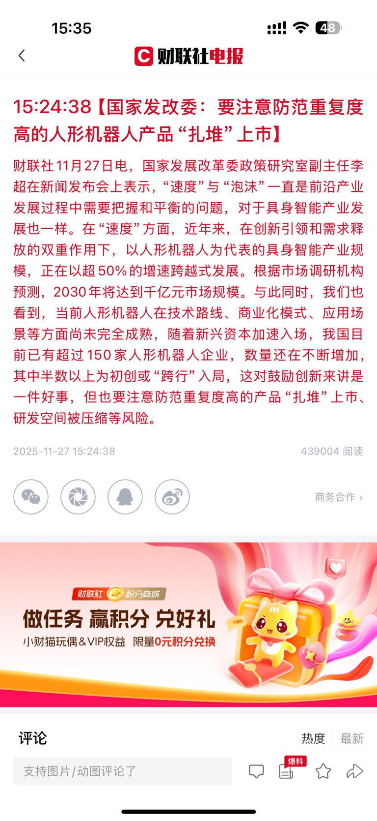 $三花智控(SZ002050)$ 这明显是利好,而且是大利好!!!意思是专业的东西交给专业的人做,那些小公司别来蹭热度,有些公司连个影子也没有,就是去考察一下,说自己公司也能做就就说自己有机器人概念,其实根本没有业务。三花是有实力有订单有业绩的头部企业,当然是利好。
