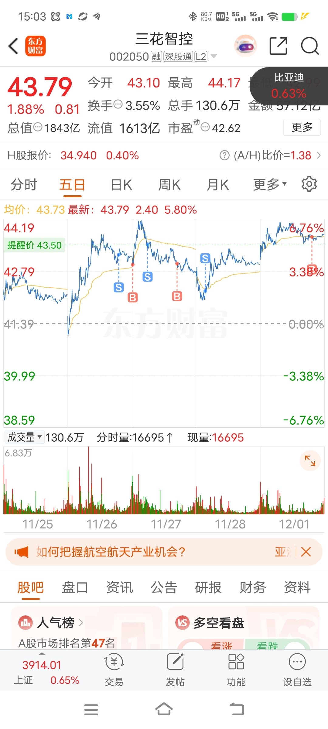 $三花智控(SZ002050)$ 感觉要涨了。sb 战法炉火纯青 成本要高了几块钱