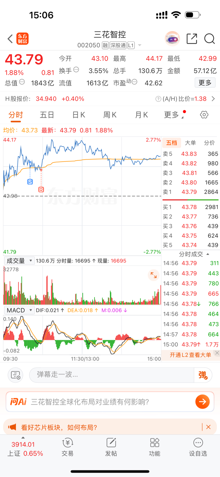 $三花智控(SZ002050)$ 食之无味,弃之可惜,T都没得做