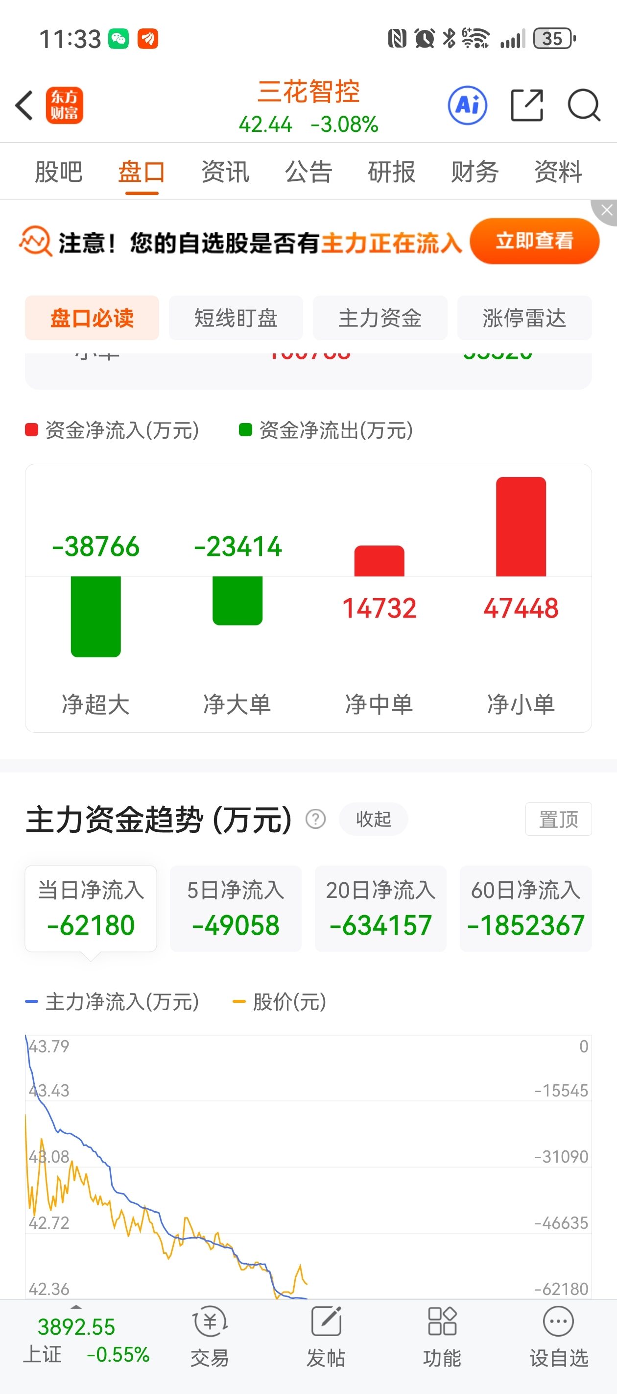 $三花智控(SZ002050)$ 都是家人们在里面冲,主力一直在出货,一个上午6个多亿没了!