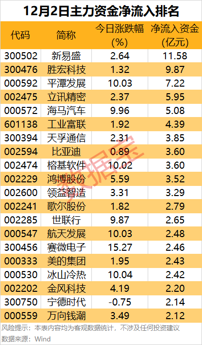 光模块龙头股新易盛主力资金净流入11.58亿元,居首;PCB龙头股胜宏科技主力资金净流入9.87亿元,居次席。