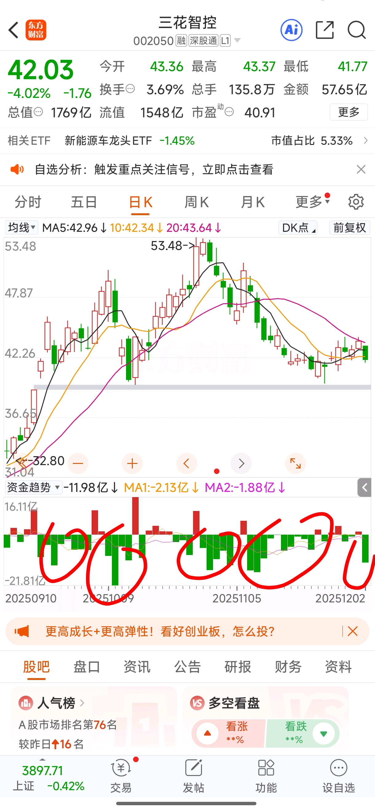 资金面大结构流出的天量和散户数整体翻倍,可以说是双双验证,今天一天的流出又超过了之前一段时间的流入,这个票也真是夸张