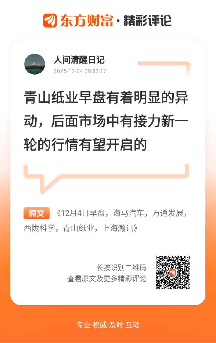 $三花智控(SZ002050)$//@人间清醒日记 :青山纸业早盘有着明显的异动,后面市场中有接力新一轮的行情有望开启的