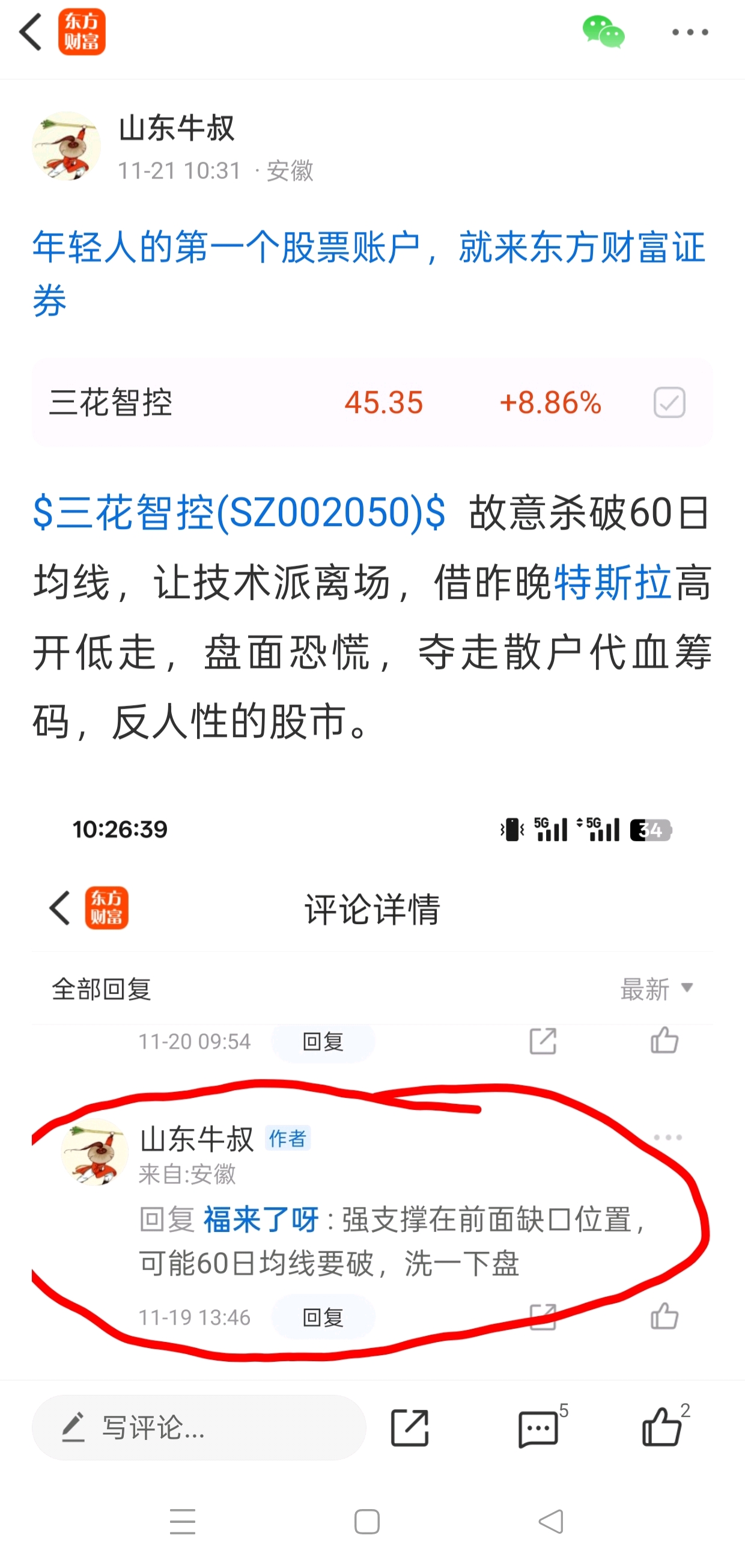 $三花智控(SZ002050)$ 11月21号让粉丝买入三花,下跌最低部买入,外围利好今日也迎来了大阳线,不知能否封板?,不负所望,加油,共勉!