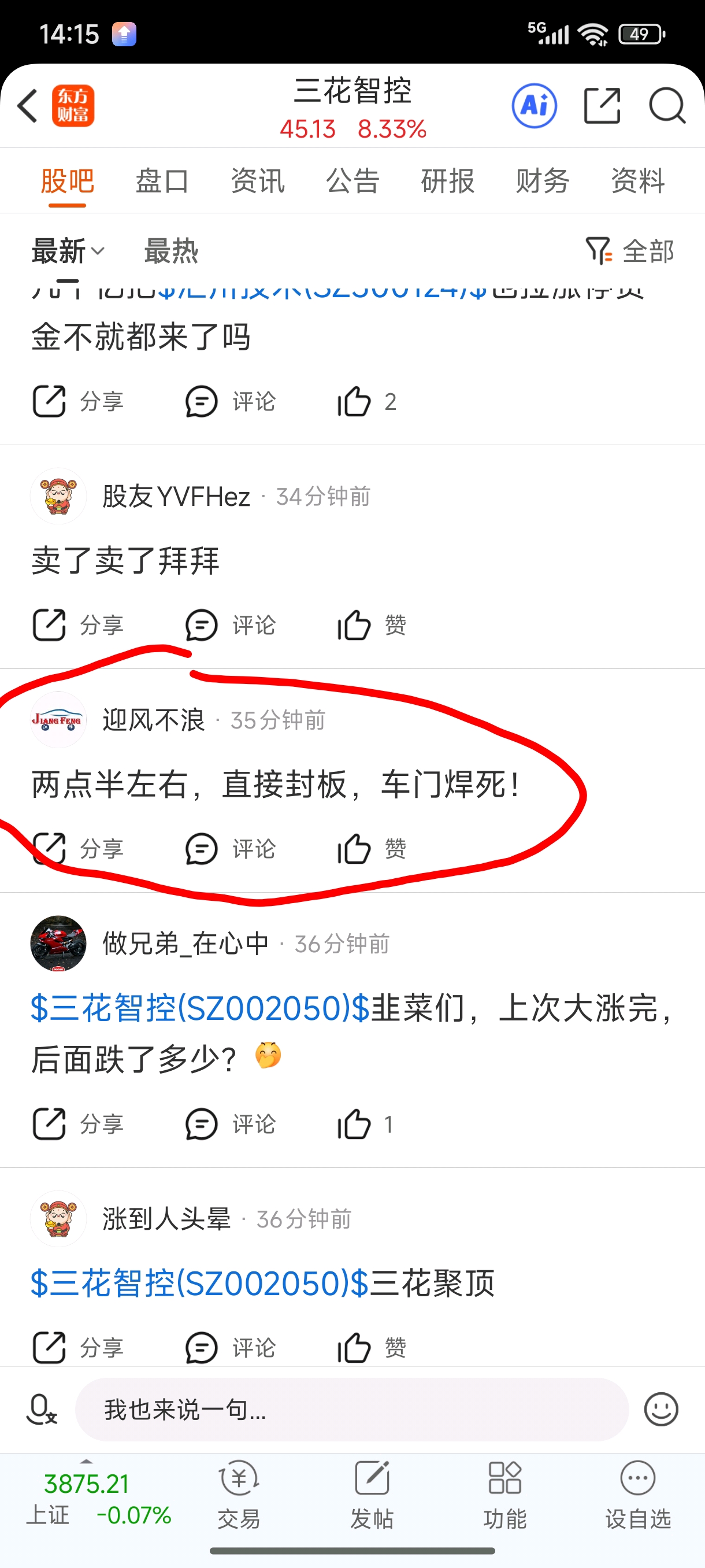温馨提示: 1.根据《证券法》规定,禁止编造、传播虚假信息或者误导性信息,扰乱证券市场;2.用户在本社区发表的所有资料、言论等仅代表个人观点,与本网站立场无关,不对您构成任何投资建议。用户应基于自己的独立判断,自行决定证券投资并承担相应风险。《东方财富社区管理规定》