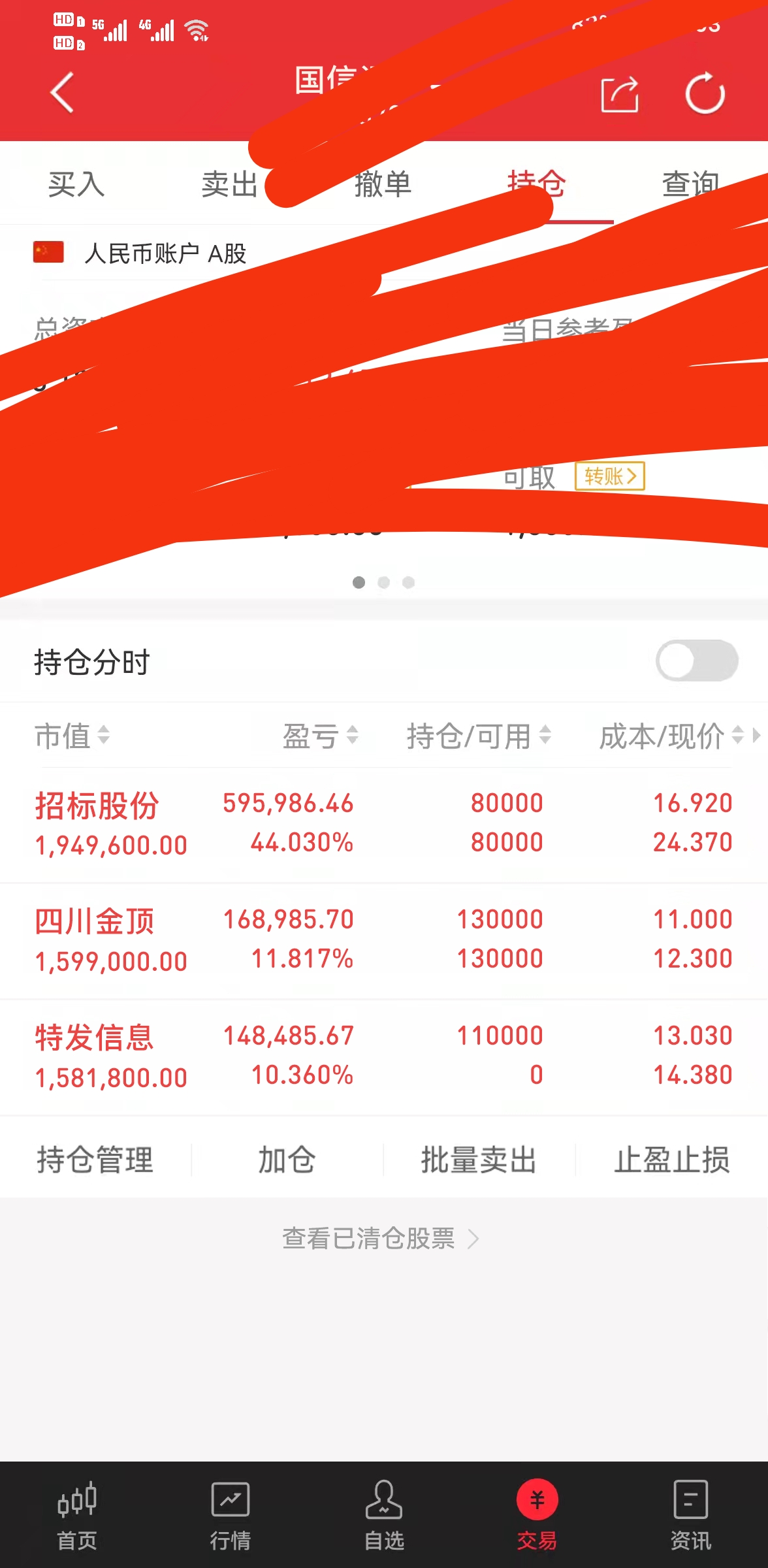 大家好,本周又迎来结尾!招标股份44cm继续持有,期待下午再表现一波为下周开个好头!四川金顶继续持有,顶峰相见。新进了特发信息,今天趋势很好再接再厉!$航天科技(SZ000901)$
