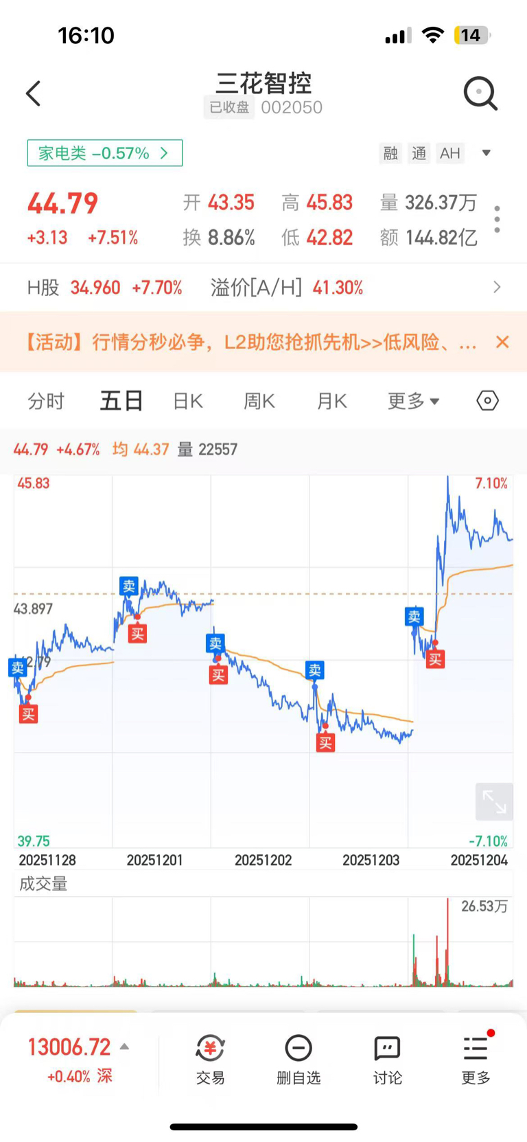 $三花智控(SZ002050)$ 谢谢、转战阳光电源