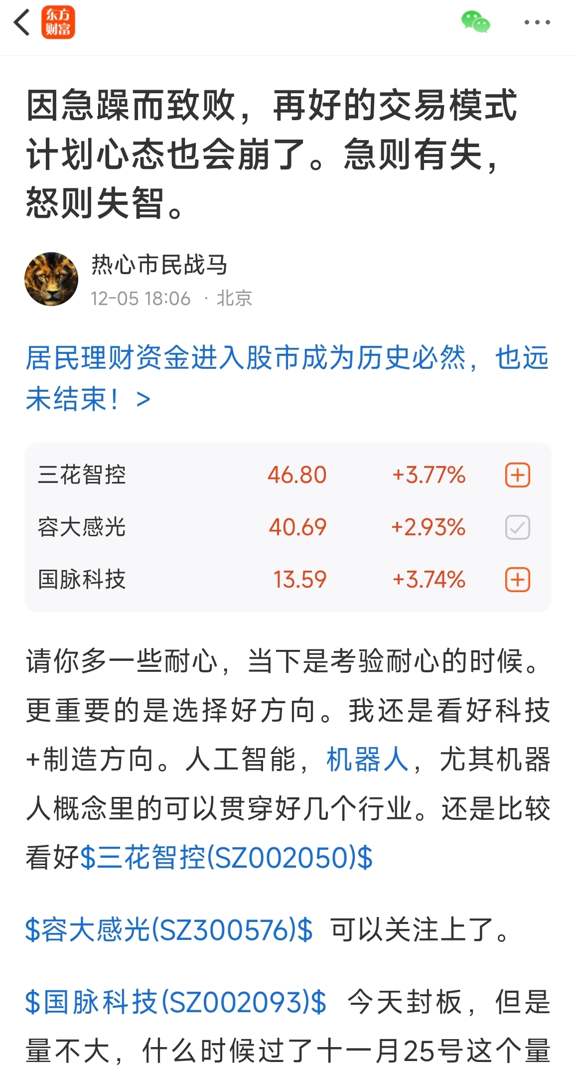 $三花智控(SZ002050)$ $容大感光(SZ300576)$ $国脉科技(SZ002093)$ 今日复盘,持续看好机器人方向,容大感光的光刻胶,国脉科技还是老样子,跌不破涨停板就继续持有,跌破先出局,若缩量这个位置调整后续更好!#收盘点评#