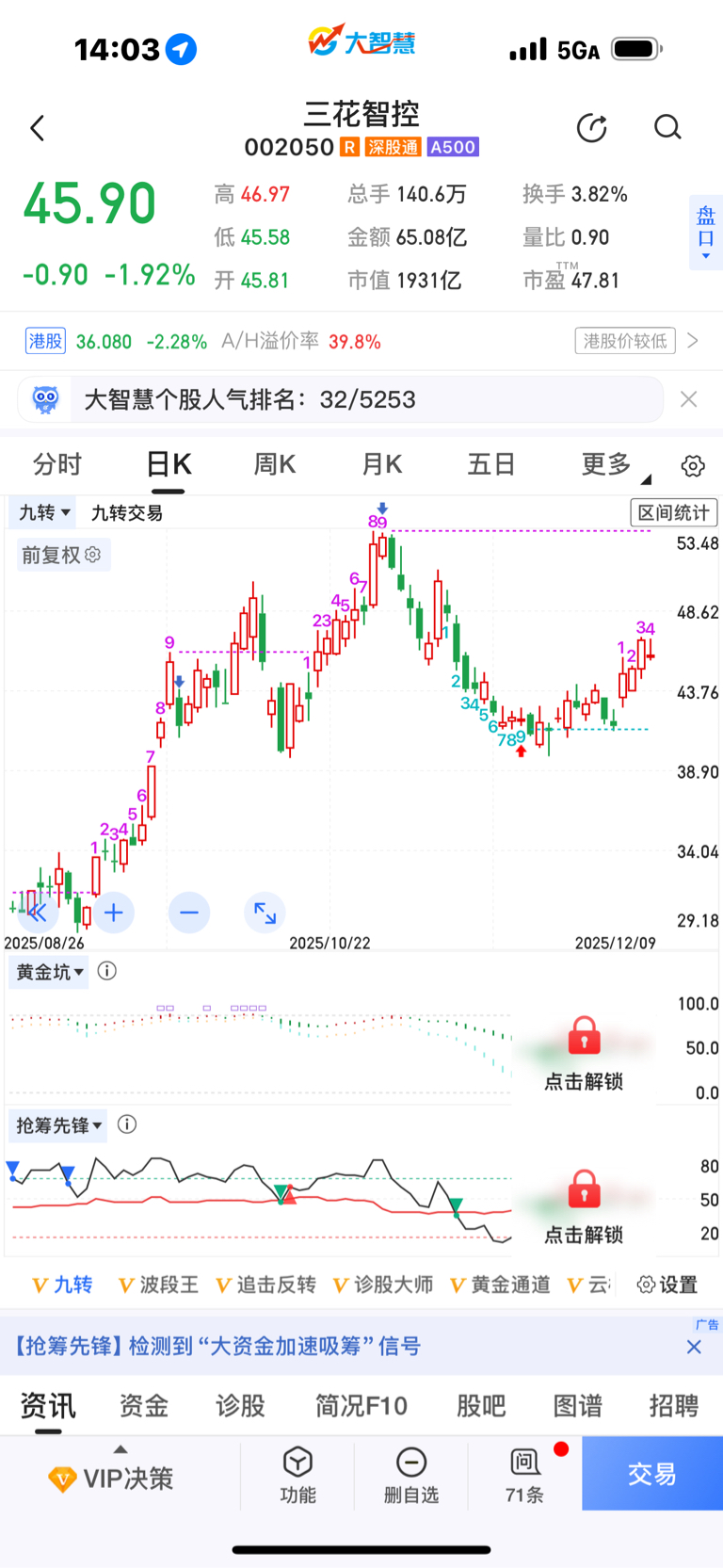 尾盘又买回来三花智控。尾盘卖出了航天动力。