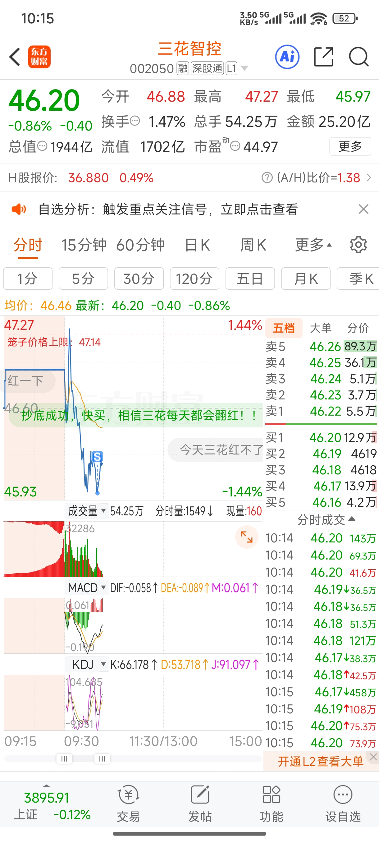$三花智控(SZ002050)$ 最低点斩仓,主力在监控我吗,就差我这点筹码
