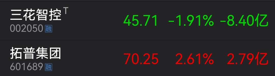 $三花智控(SZ002050)$ 对比一下三花和托普的资金,三花目前流出8个多亿,托普目前流入2个多亿,大家看清楚后才知道该怎样选择。