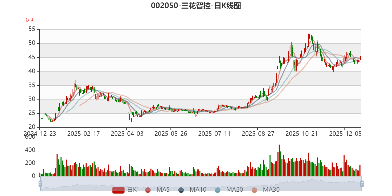 三花智控:预计2025年净利38.74亿元-46.49亿元 同比增长25%-50%