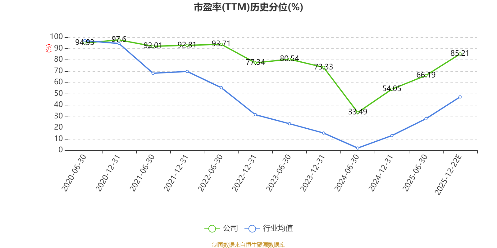 以本次披露业绩预告均值计算,公司近年市盈率(TTM)图如下所示: