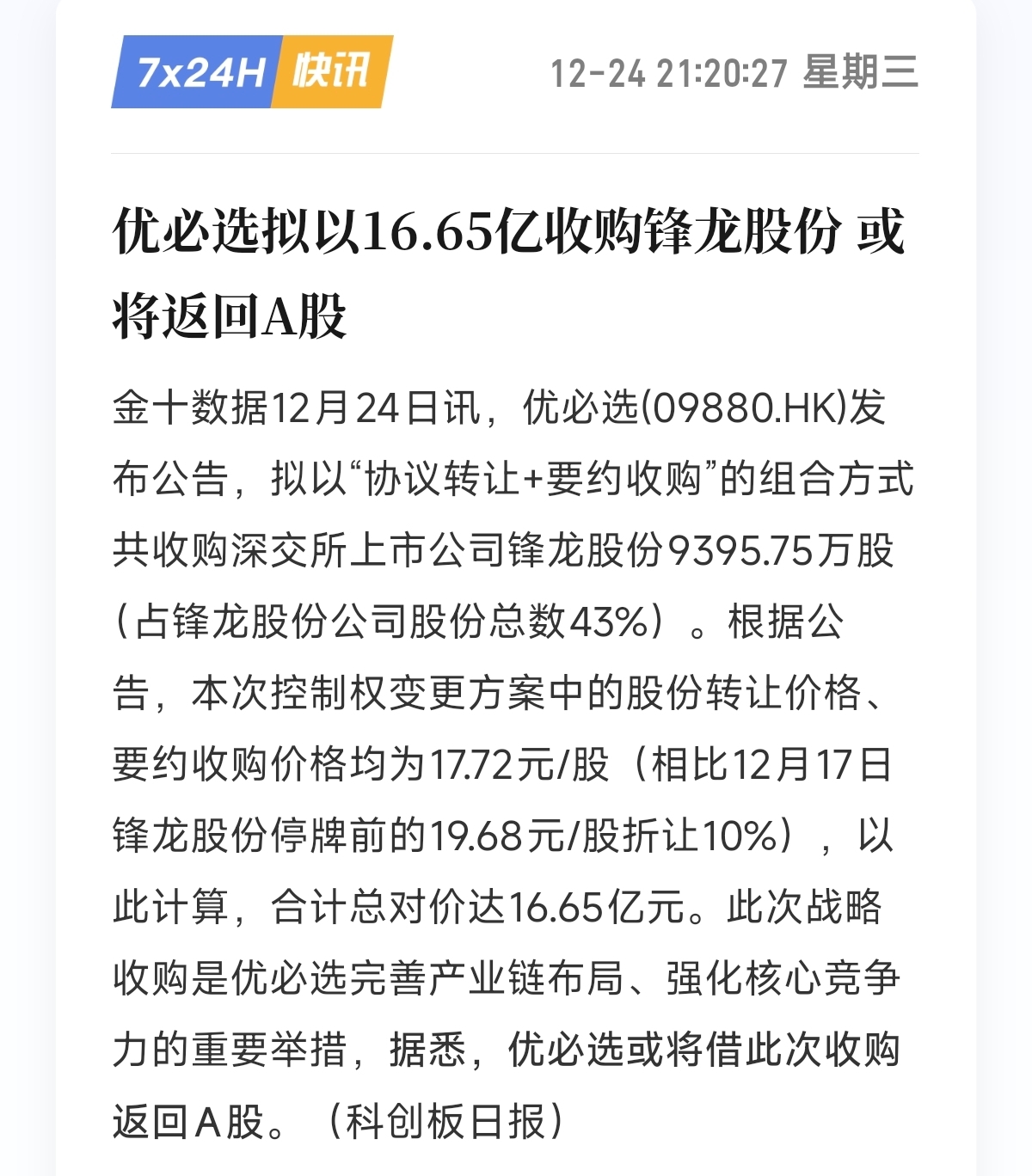 4. 消息面利好机器人:优必选拟以16.56亿元收购锋龙股份,或将返回A股;