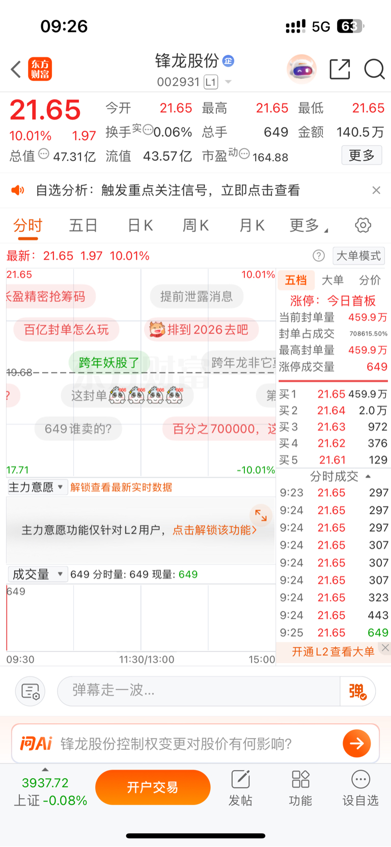 80亿封单。