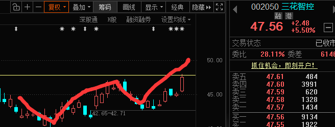 三花智控 黄线(庄家成本线),自救回血,回血结束,卖出了结。