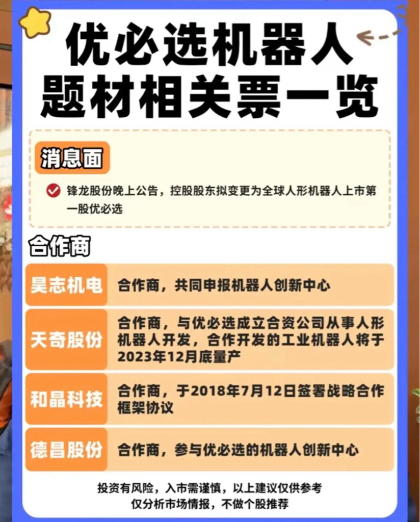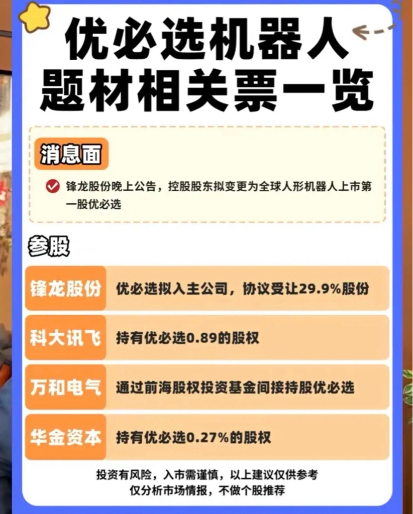 优必选机器人概念股!今天多个机器人概念股大涨,尤其议以近期锋龙股份为代表的优必选