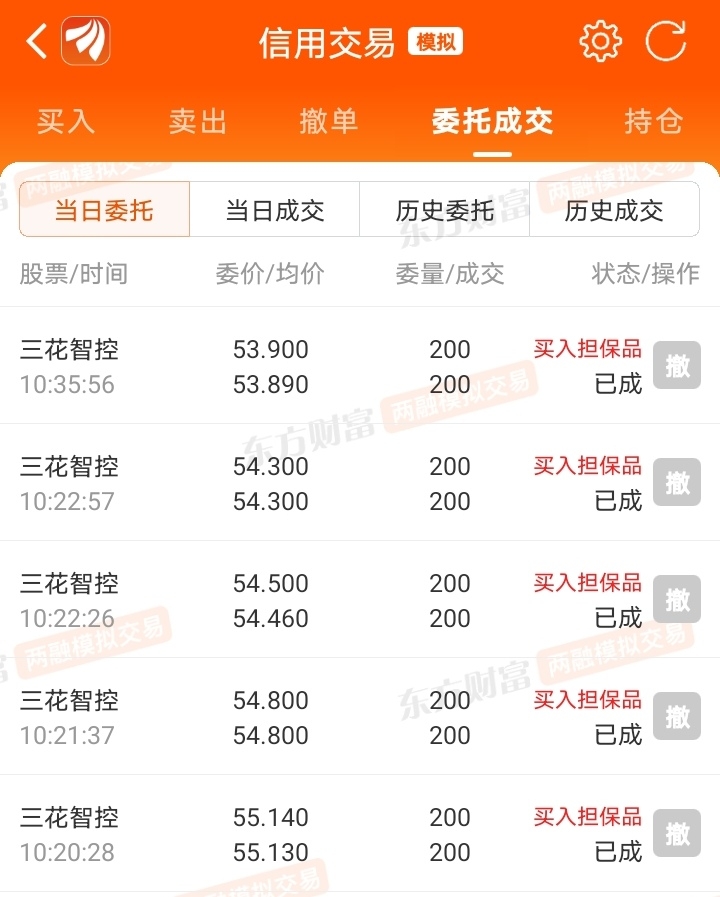 $三花智控(SZ002050)$ 怎么追高?就师范一下:小仓位买入,下跌,再买,继续跌,继续买。55买到53。