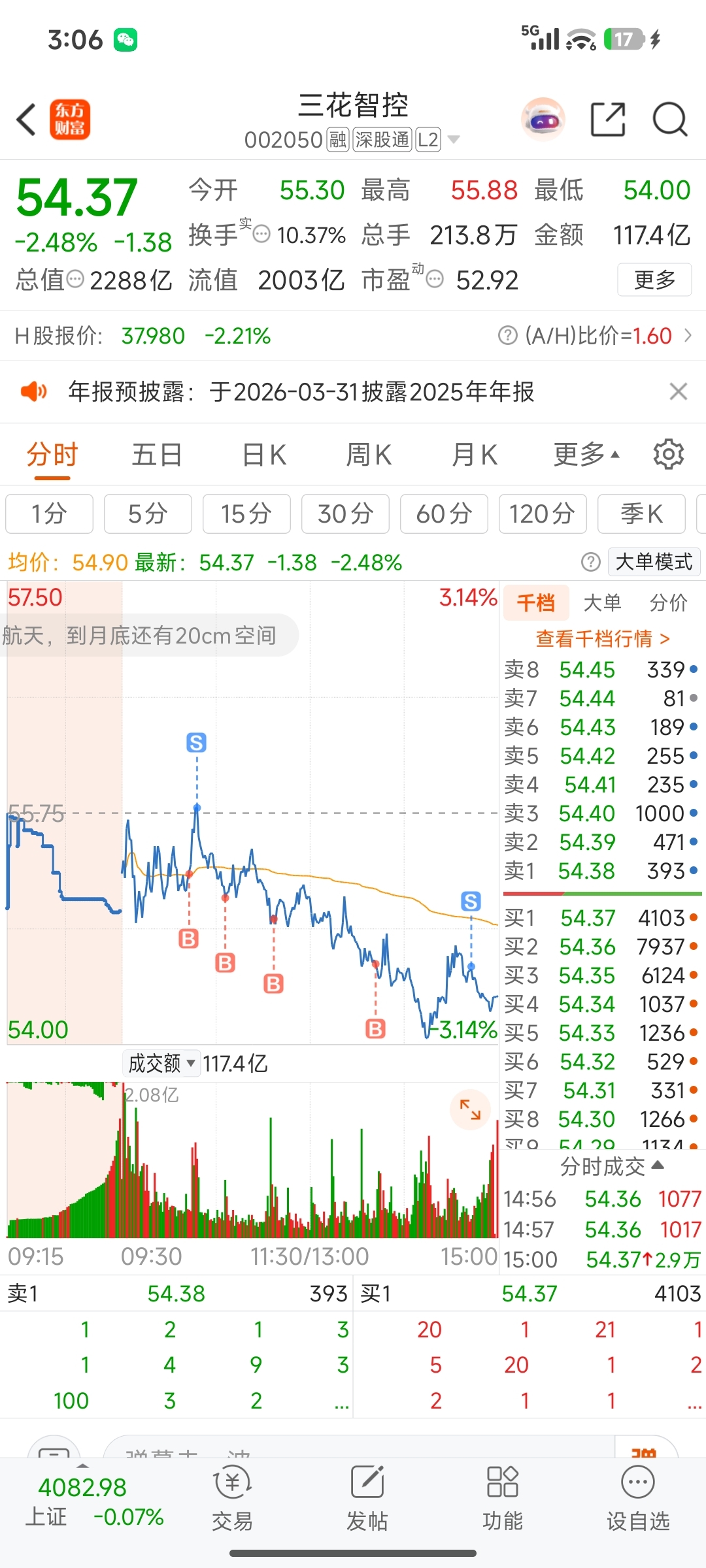 $三花智控(SZ002050)$ 又帮券商打一天工