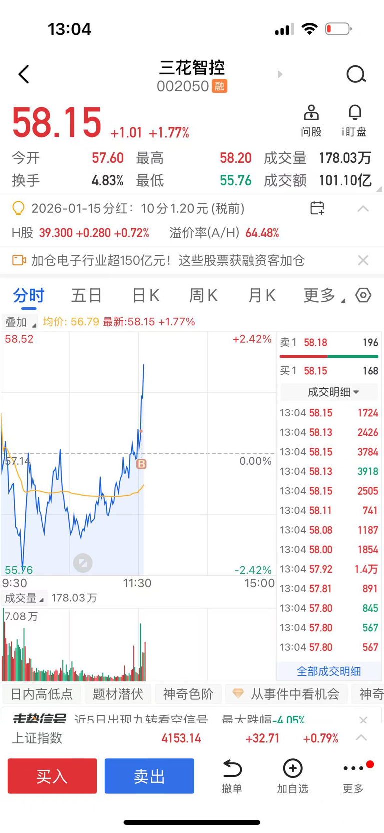 $三花智控(SZ002050)$ 下午开盘在次潜入三花