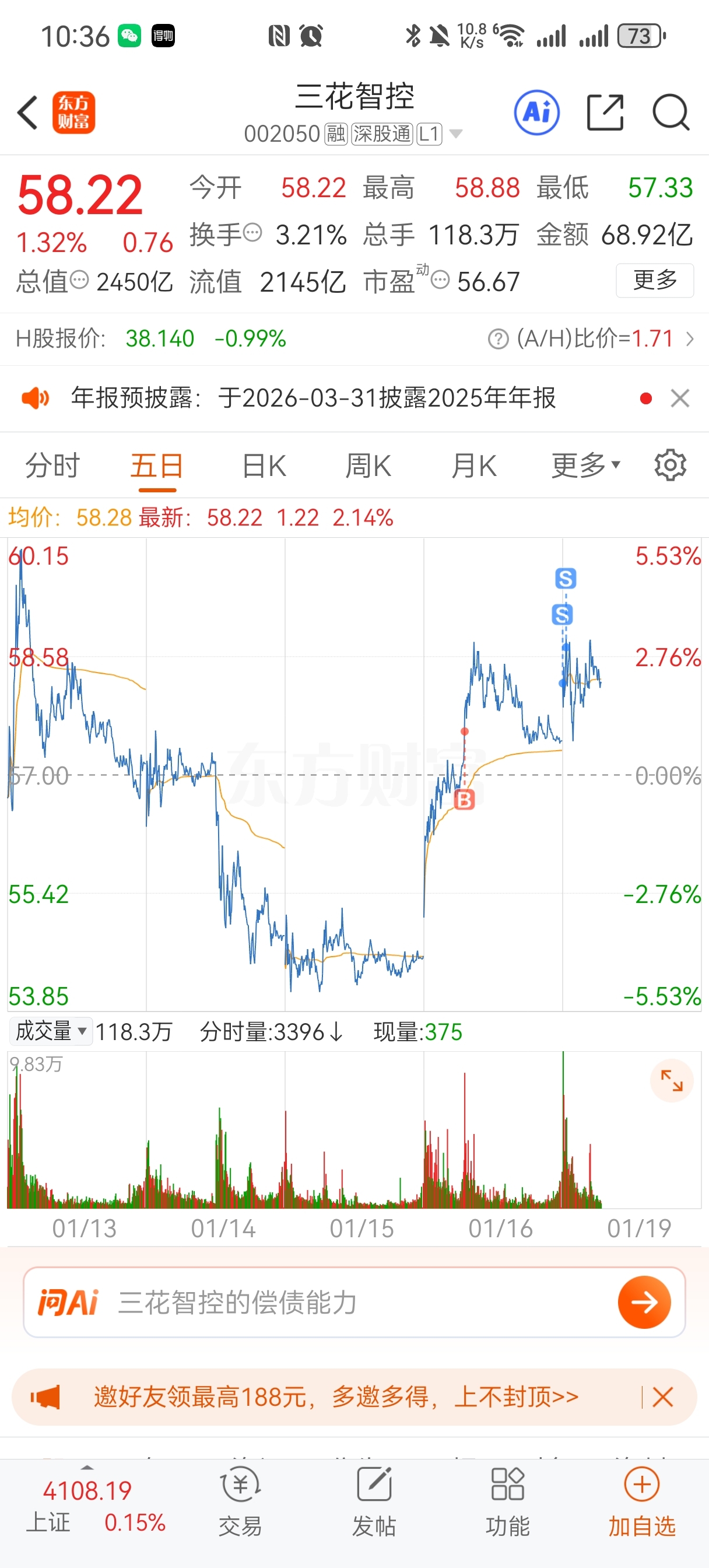 $三花智控(SZ002050)$ 下午跑吧,五洲封不住,下午直线跳水,机器人板块主力流出了