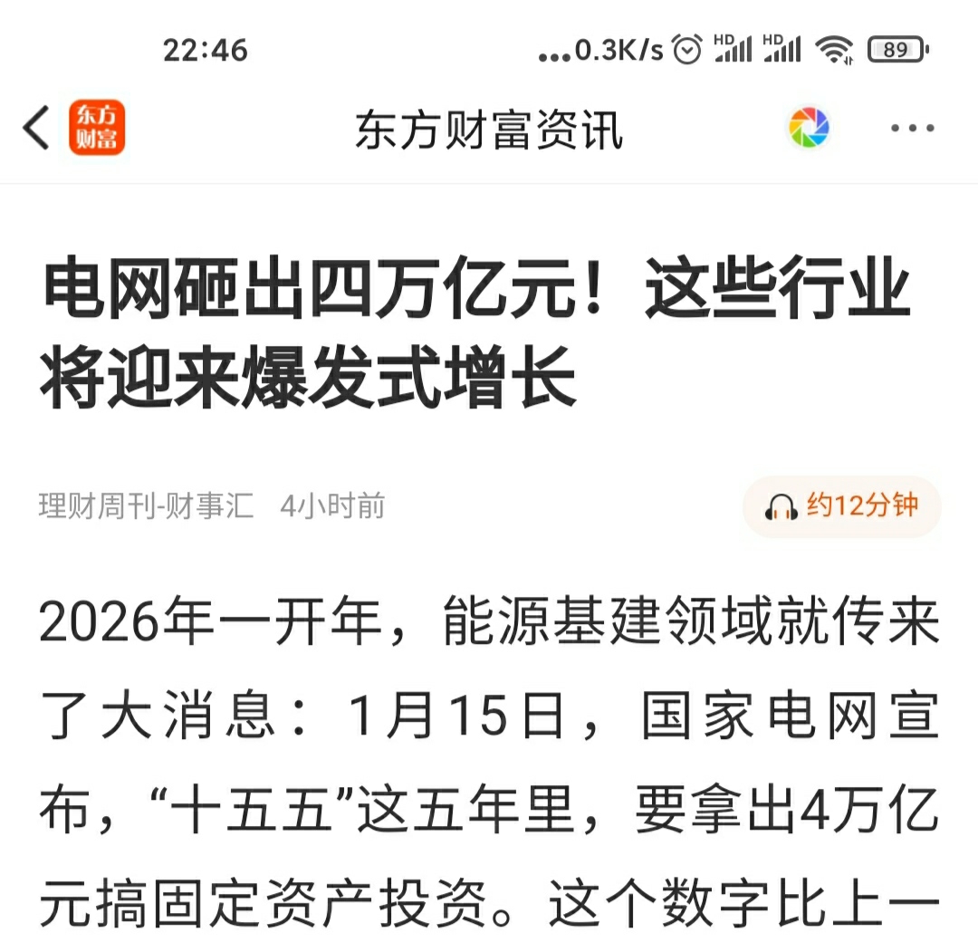 超重磅1月15日,国家电网.宣布,“十五五”这五年里,要拿出4万亿元搞固定资产投