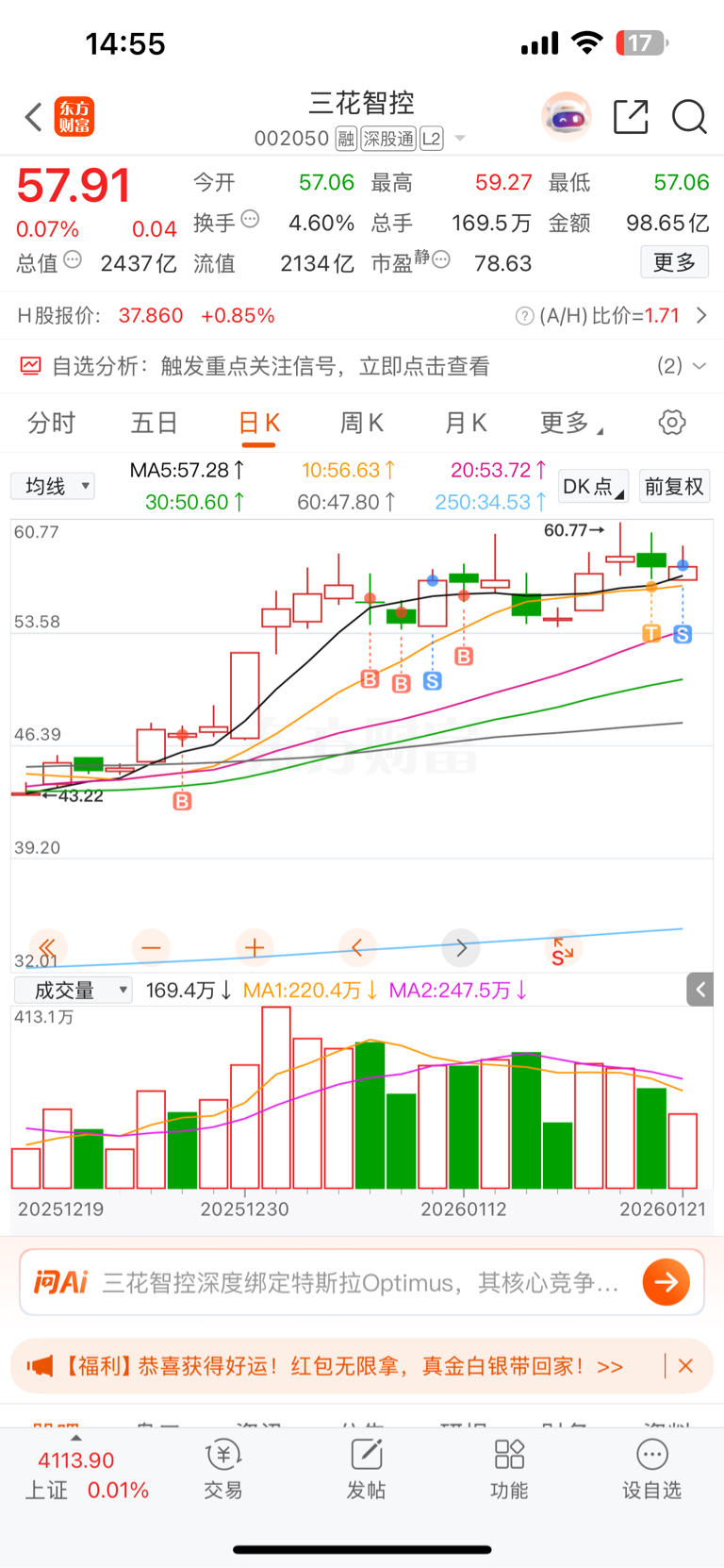 $三花智控(SZ002050)$ 清仓了,这几天盯盘盯得太难受了。看着没啥大问题,这几天跳水是因为宽基都他么的卖疯了。。但是这三天最高点一天比一天低,我还是空两天吧