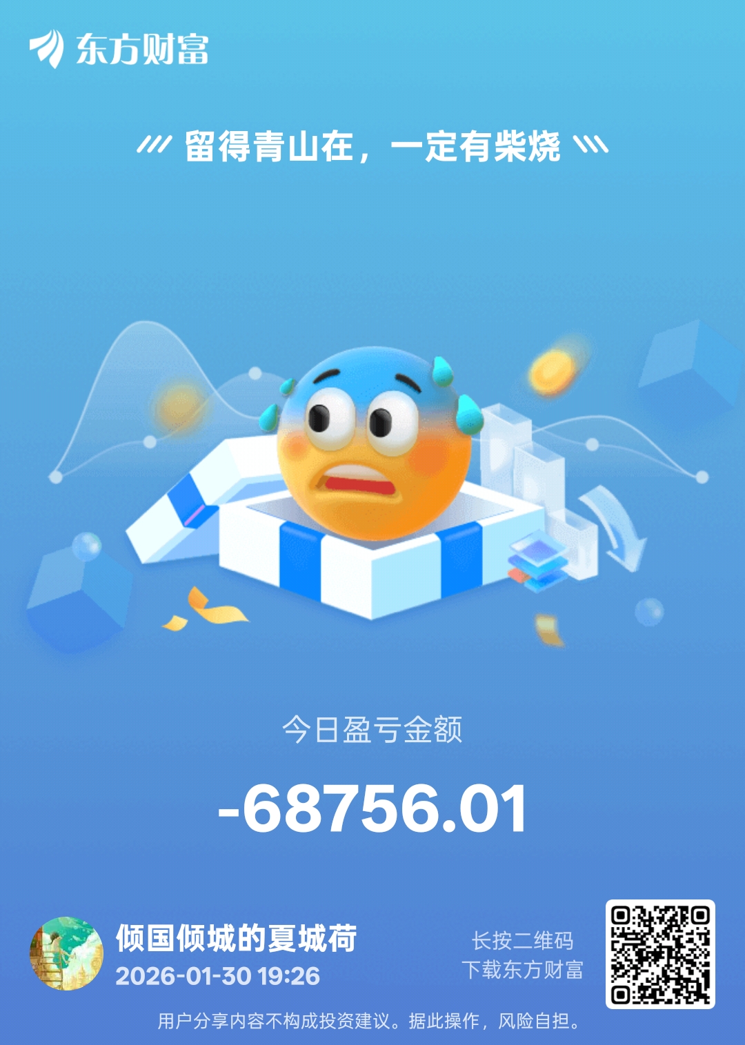 温馨提示: 1.根据《证券法》规定,禁止编造、传播虚假信息或者误导性信息,扰乱证券市场;2.用户在本社区发表的所有资料、言论等仅代表个人观点,与本网站立场无关,不对您构成任何投资建议。用户应基于自己的独立判断,自行决定证券投资并承担相应风险。《东方财富社区管理规定》