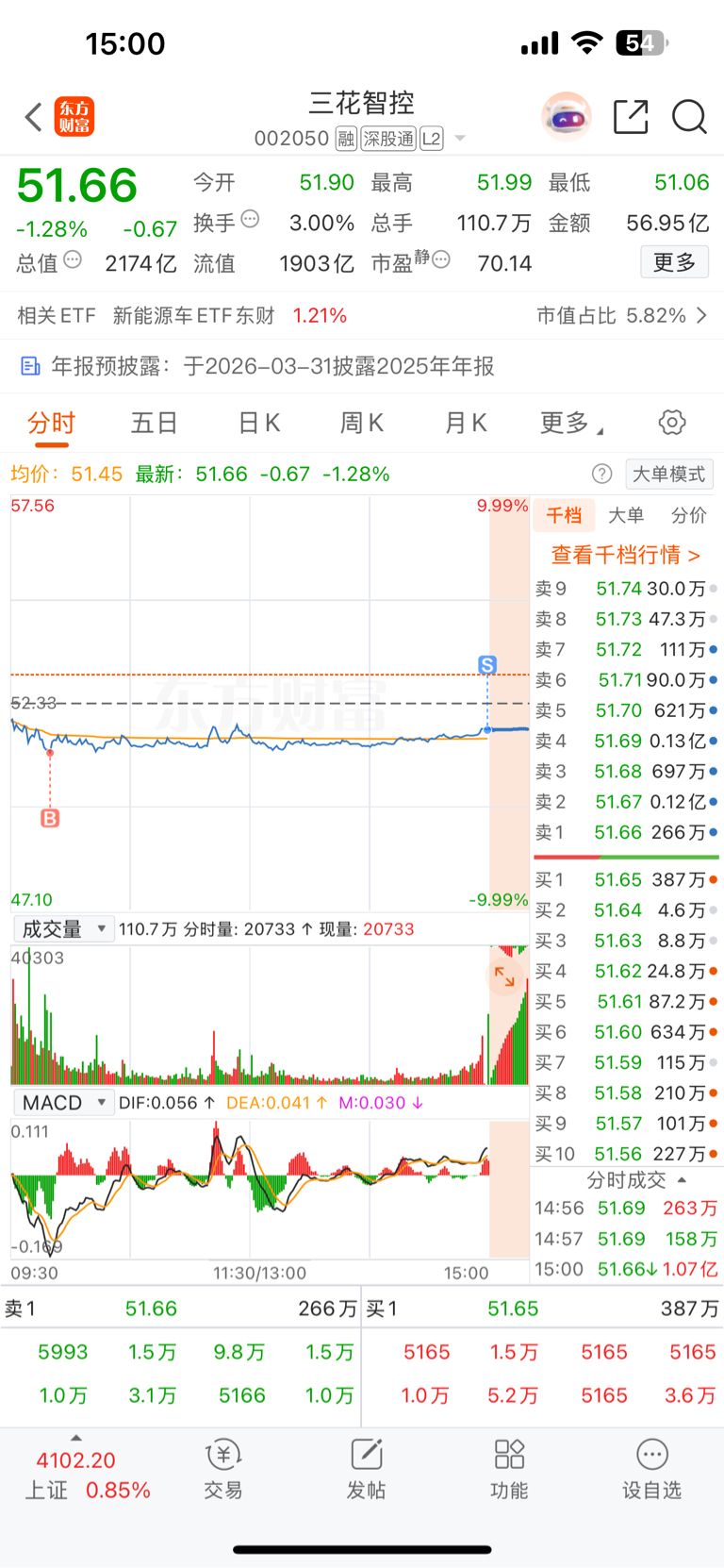 $三花智控(SZ002050)$ 全天最低点买入勉强T了一个点,这振幅都没有!织布机织了一天!