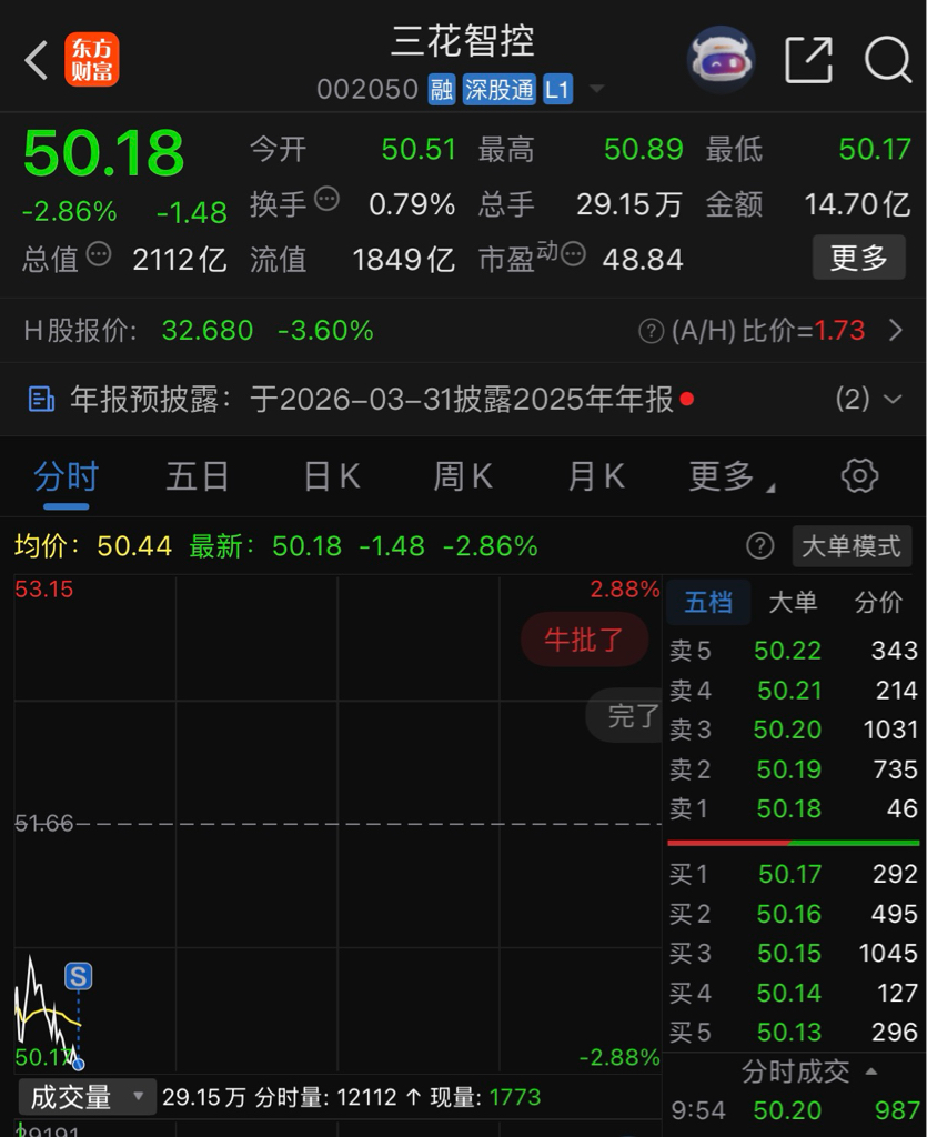 $三花智控(SZ002050)$ 全卖去抄底易中天