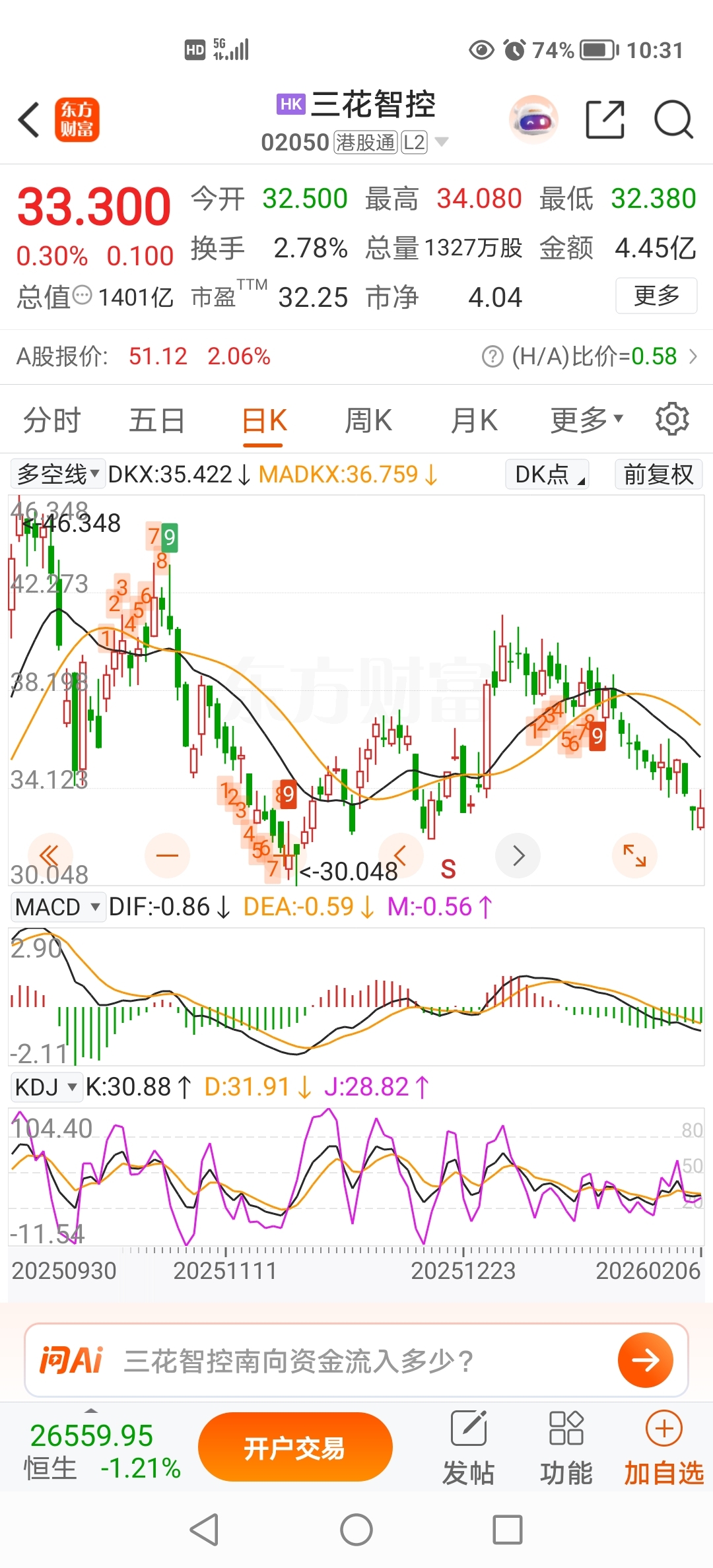 港股太坏了,将来肯定是利用我们假期休假偷偷涨,不信等着看吧。然后我们开盘后,高开