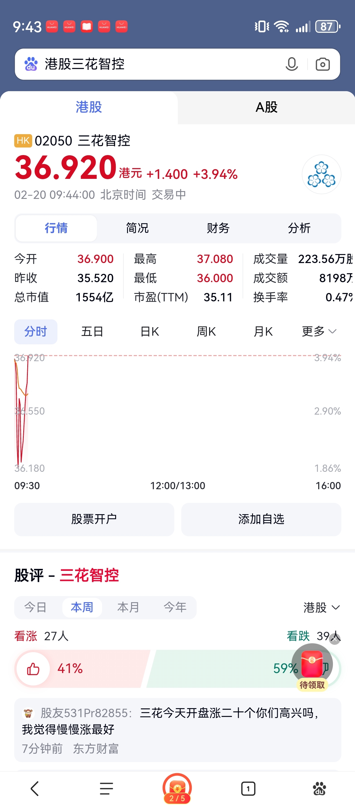 $三花智控(SZ002050)$ 三花智控香港H股,你猜收盘涨多少?目前3.94%