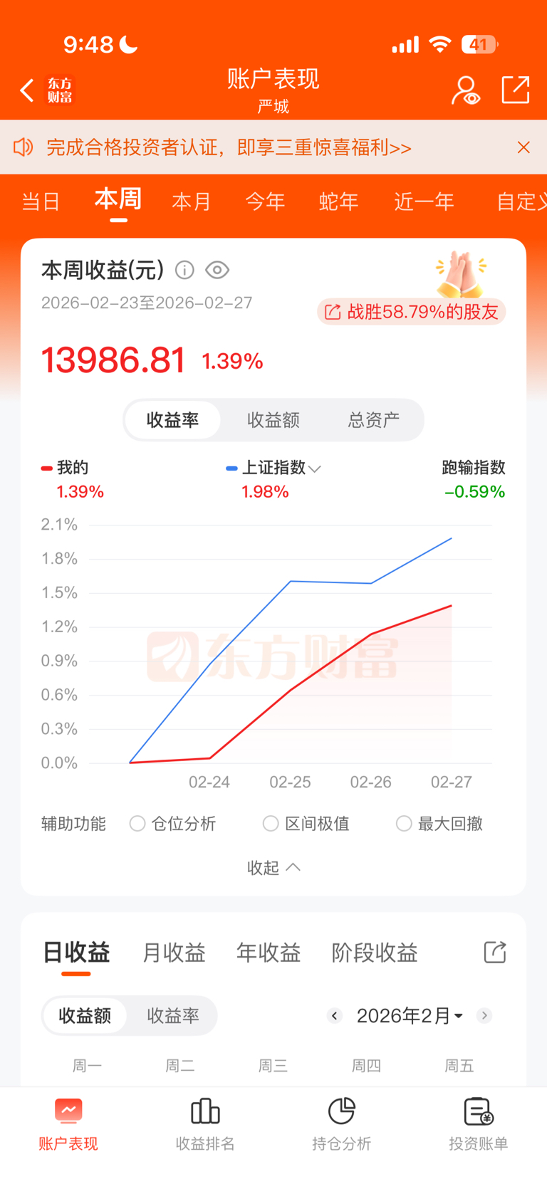 春节后一周(4个交易日)的利润仅有1.39%,万把块。