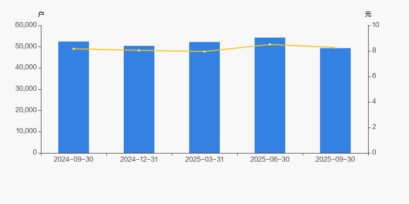 截至2025年9月30日,公司最新流通股本为12.37亿股。户均持有流通股数量由上期的2.28万股上升至2.51万股,户均流通市值20.76万元。