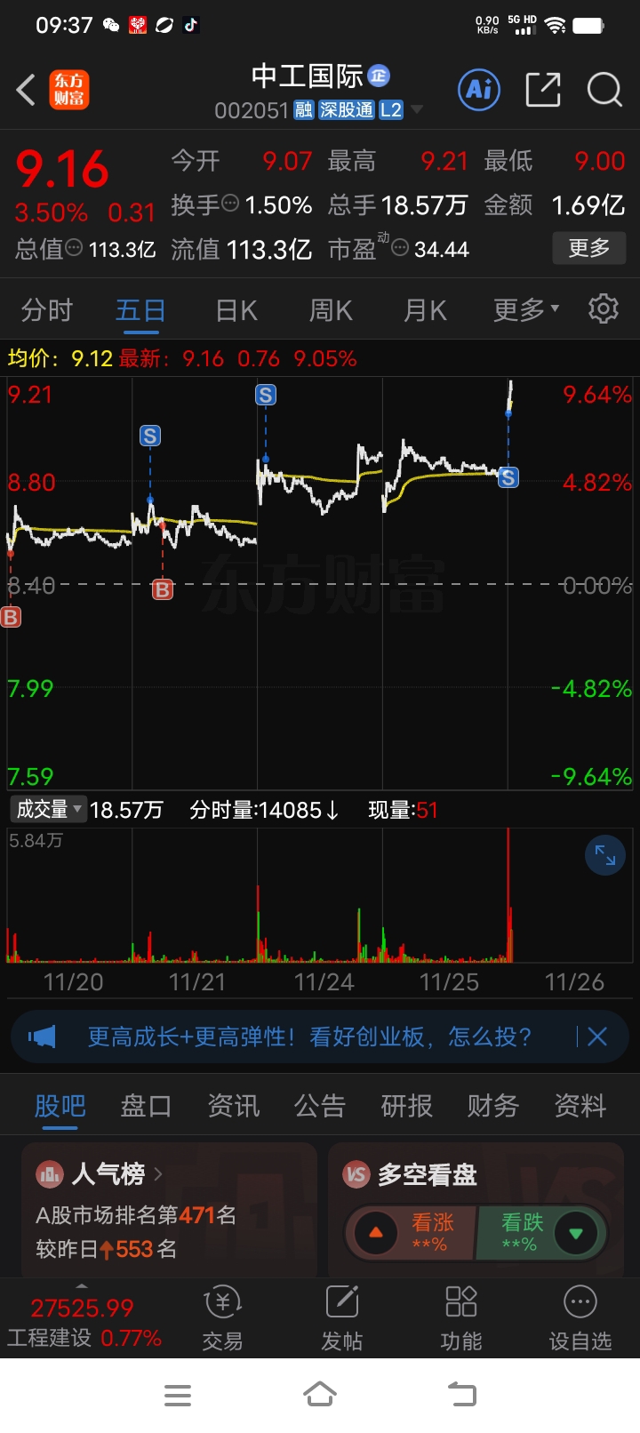 $中工国际(SZ002051)$ 撤了,咬一口就跑,回头再来……