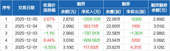 中工国际:融资净偿还1209.1万元,融资余额2.87亿元(12-05)
