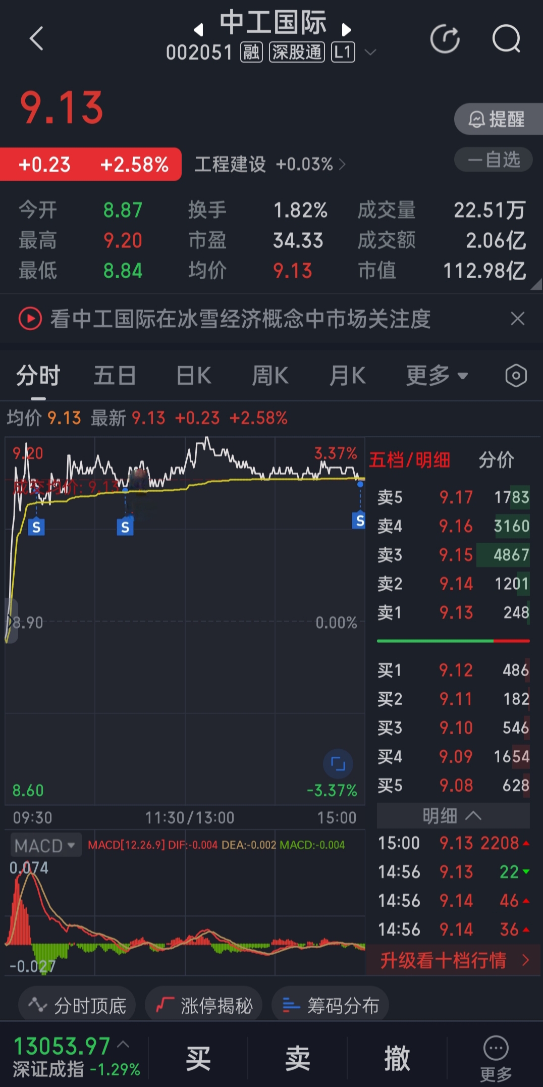 $中工国际(SZ002051)$ 两年时间了。请求主力让我体验一次卖飞的感觉