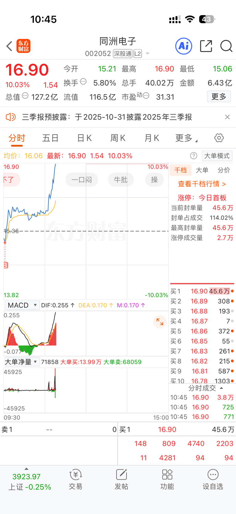 $同洲电子(SZ002052)$ 买少了,