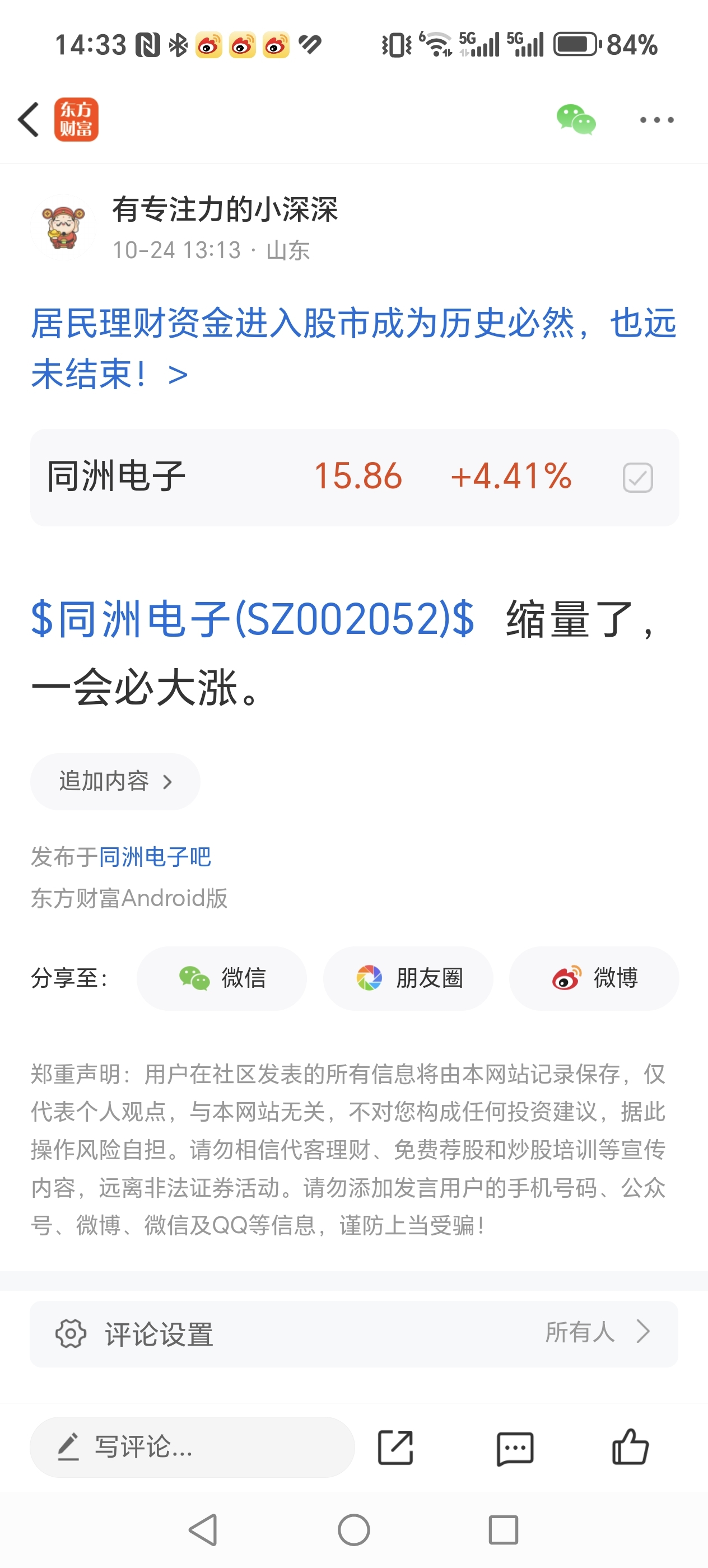 温馨提示: 1.根据《证券法》规定,禁止编造、传播虚假信息或者误导性信息,扰乱证券市场;2.用户在本社区发表的所有资料、言论等仅代表个人观点,与本网站立场无关,不对您构成任何投资建议。用户应基于自己的独立判断,自行决定证券投资并承担相应风险。《东方财富社区管理规定》