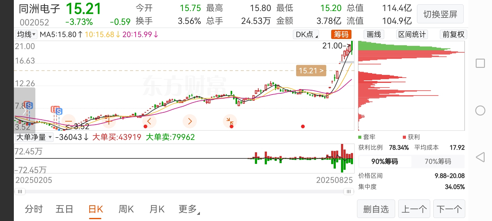 $同洲电子(SZ002052)$ 3月份3.71割肉ST同洲,当时同洲电子还没有摘帽,卖完同洲第二天就一字涨停,然后连续十个一字涨停板!差一天错过十倍大牛股!
