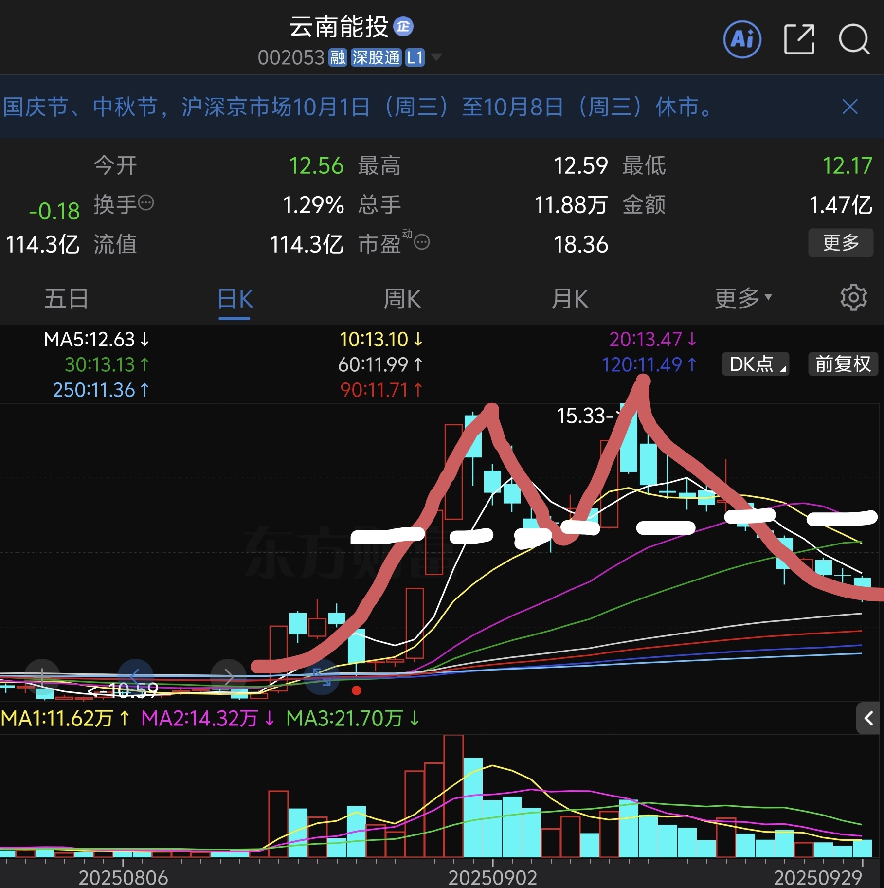 M头破位,主力拉高出货,已经完成派发!主力再次收集到足够的筹码至少需要2.3个月
