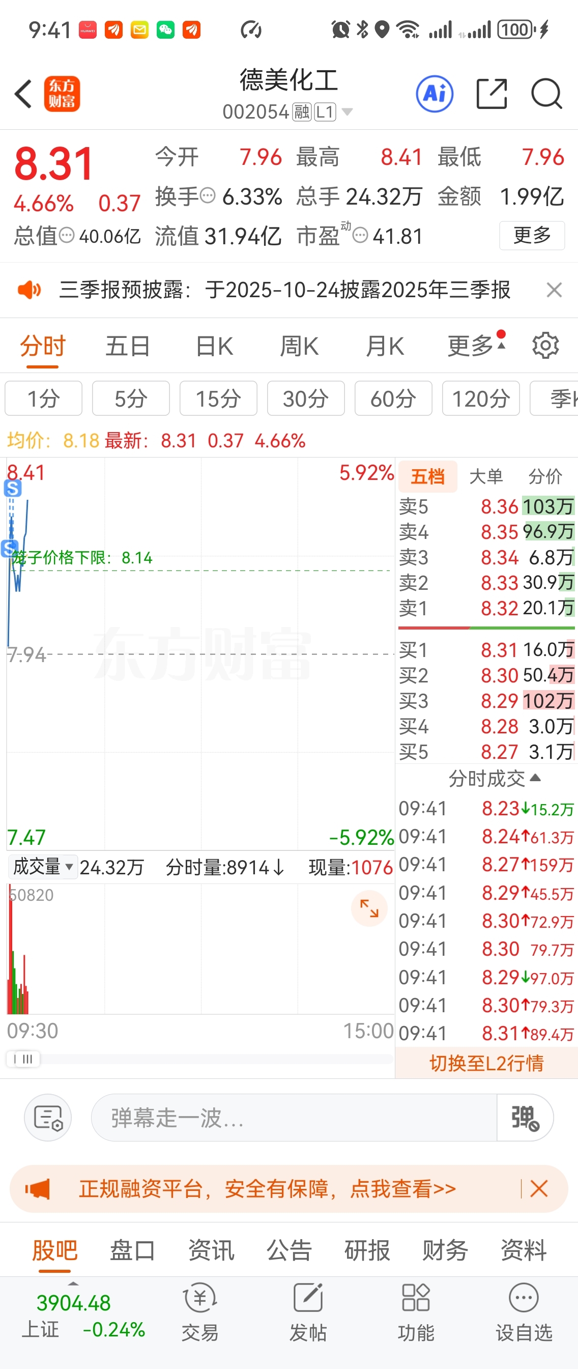 $德美化工(SZ002054)$ 出早了,要涨停嘛?