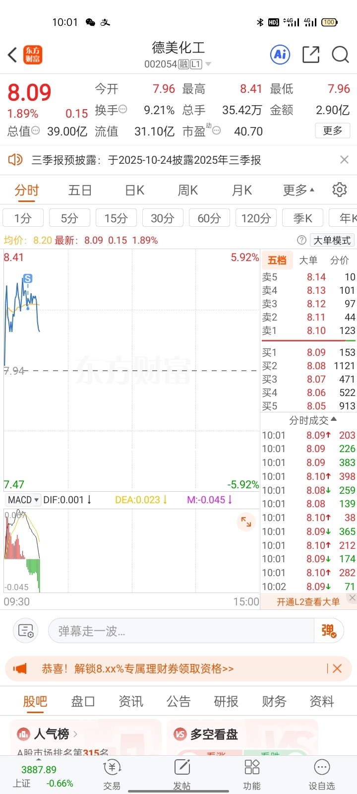 $德美化工(SZ002054)$ 留了一点,不敢赌涨停
