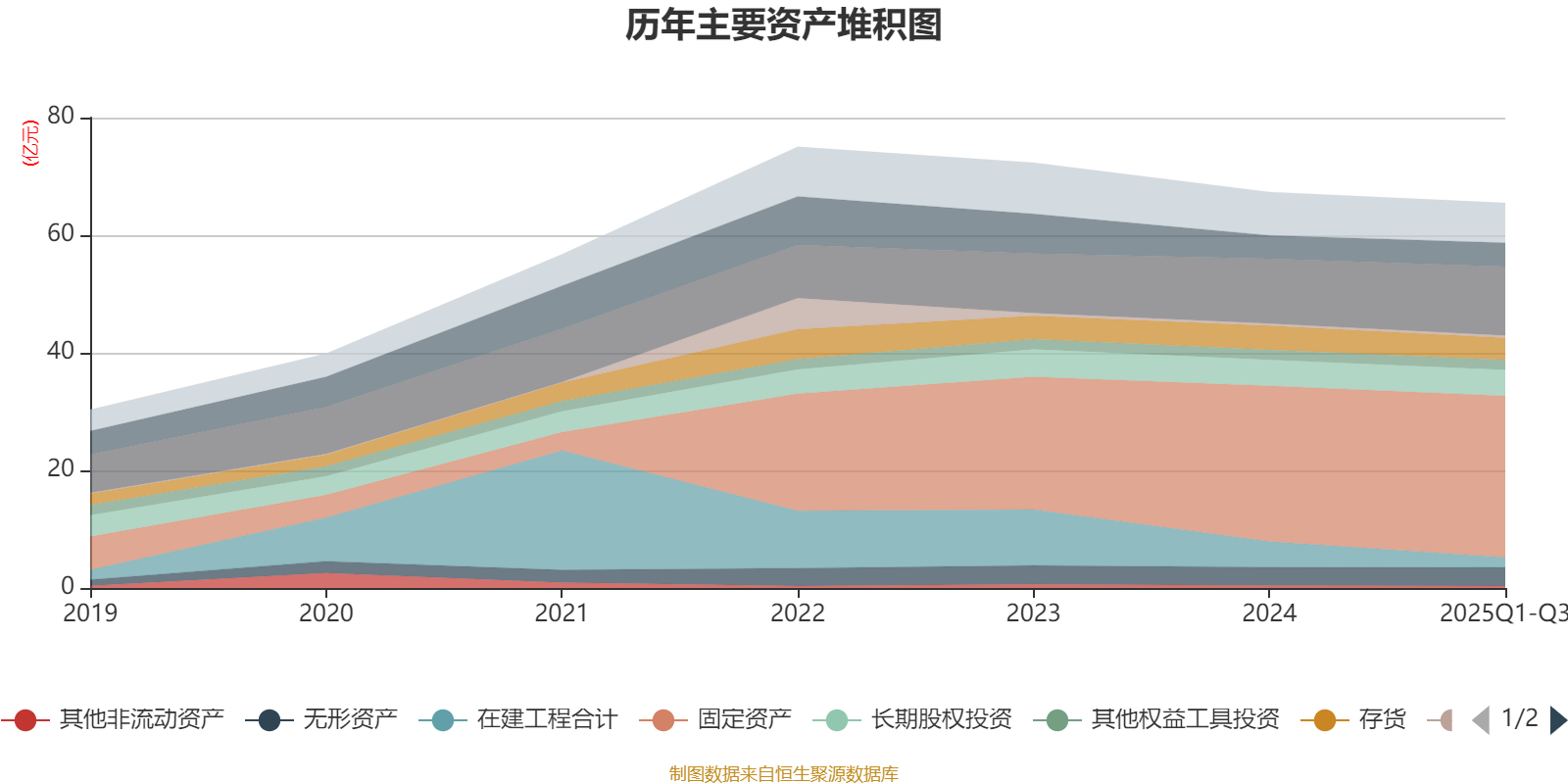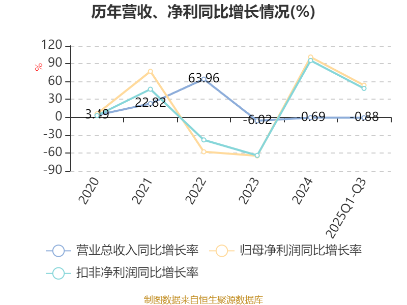 资产重大变化方面,截至2025年三季度末,公司在建工程合计较上年末减少60.38%,占公司总资产比重下降3.82个百分点;固定资产较上年末增加3.62%,占公司总资产比重上升2.58个百分点;应收票据及应收账款较上年末增加6.76%,占公司总资产比重上升1.6个百分点;一年内到期的非流动资产较上年末减少100%,占公司总资产比重下降0.48个百分点。