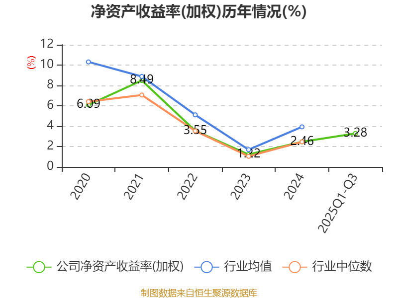 盈利能力方面, 2025年前三季度公司加权平均净资产收益率为3.28%,同比上升1.16个百分点。公司2025年前三季度投入资本回报率为2.23%,较上年同期上升3.55个百分点。
