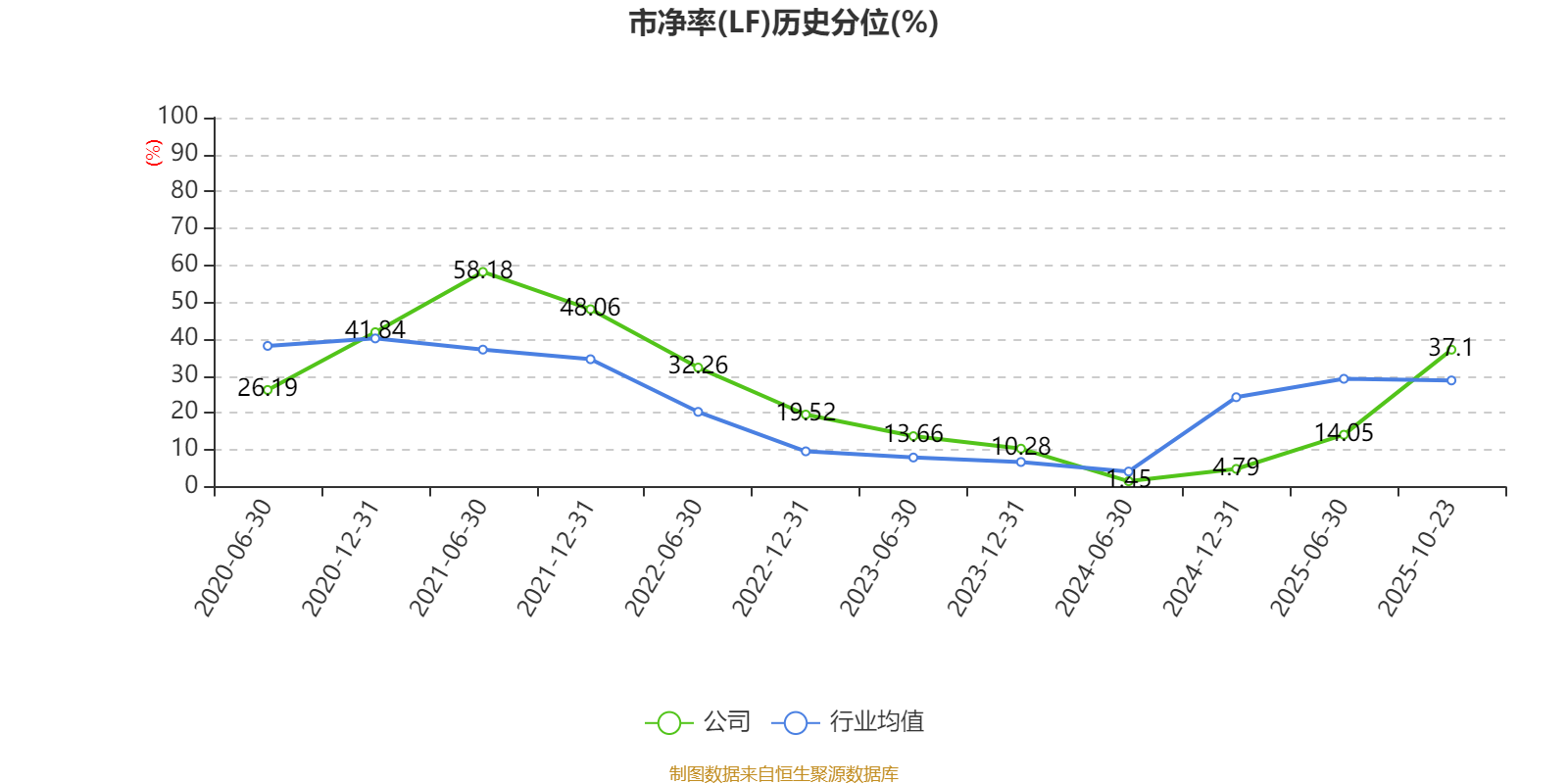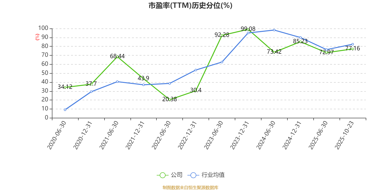 市盈率、市净率为负时,不显示当期分位数,会导致折线图中断。