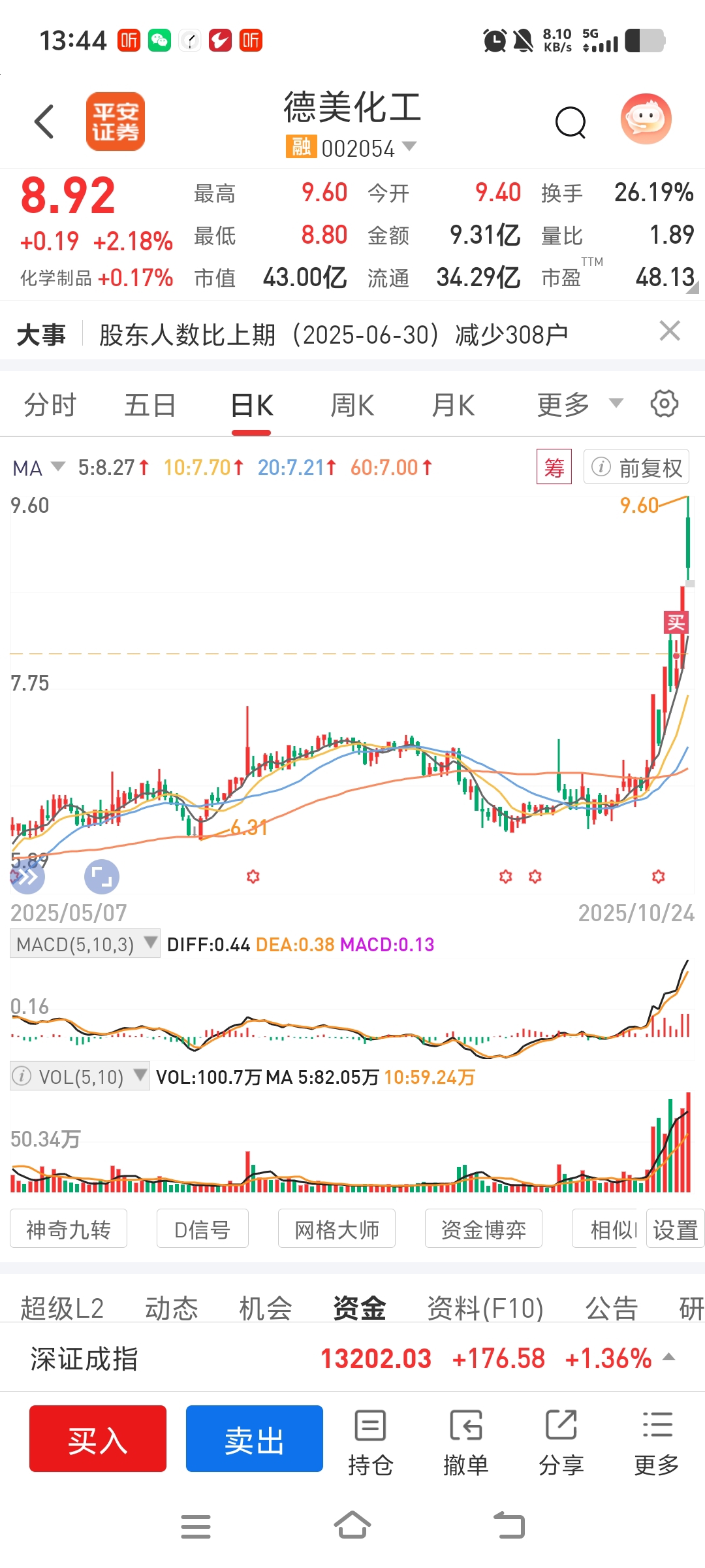 $德美化工(SZ002054)$ 高位放量,不死也伤,拉高跑路,低位再接回来是正确选择,上午没看盘,完蛋,希望下午给力