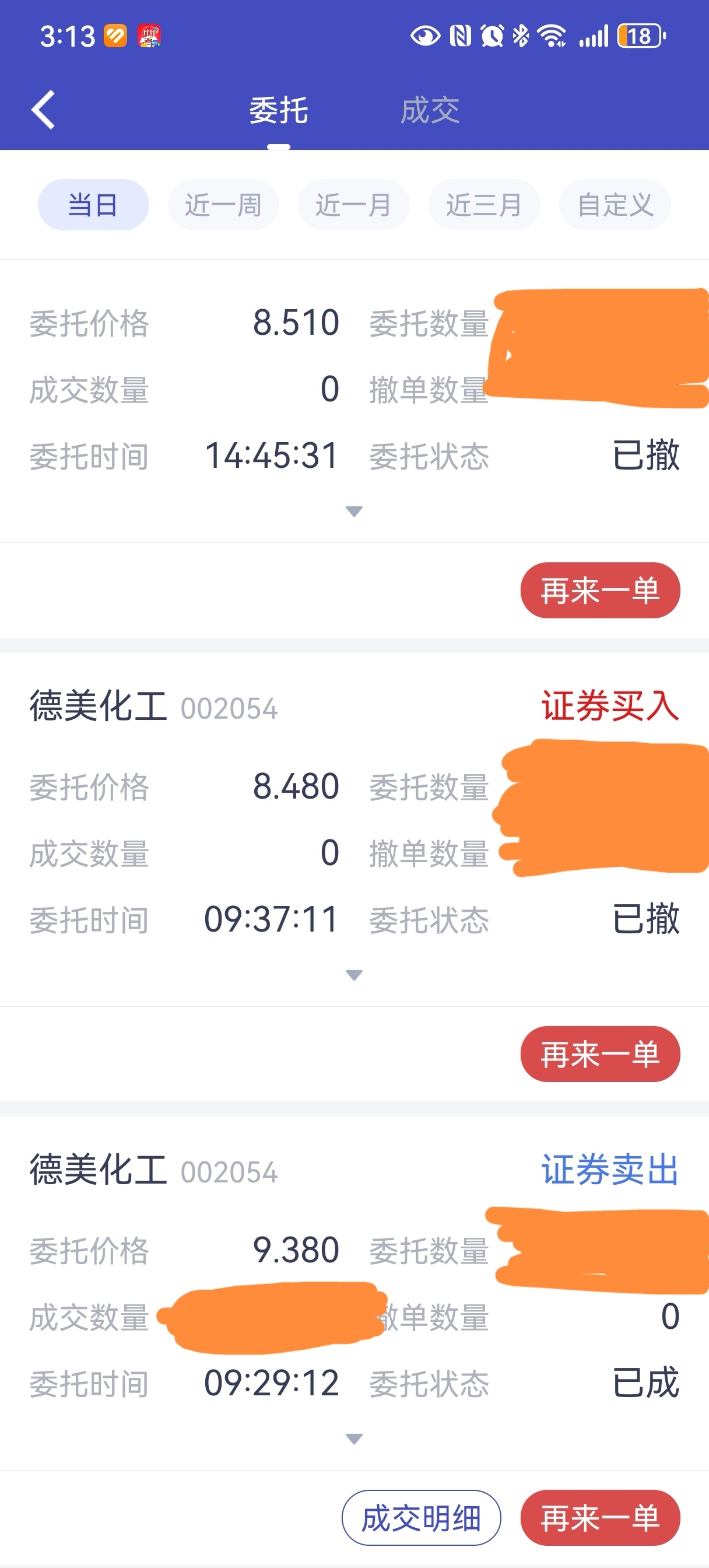$德美化工(SZ002054)$ 早盘达到预期,竞价跑了,尾盘买回来,比我早盘委托的价格低了几分钱