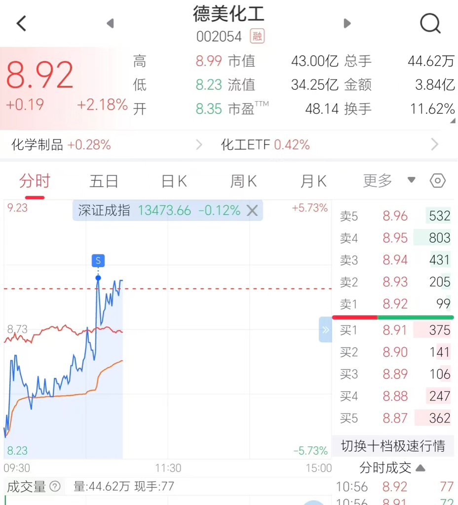 $德美化工(SZ002054)$ 8.99清了,轻松了,今天下午要涨停hh